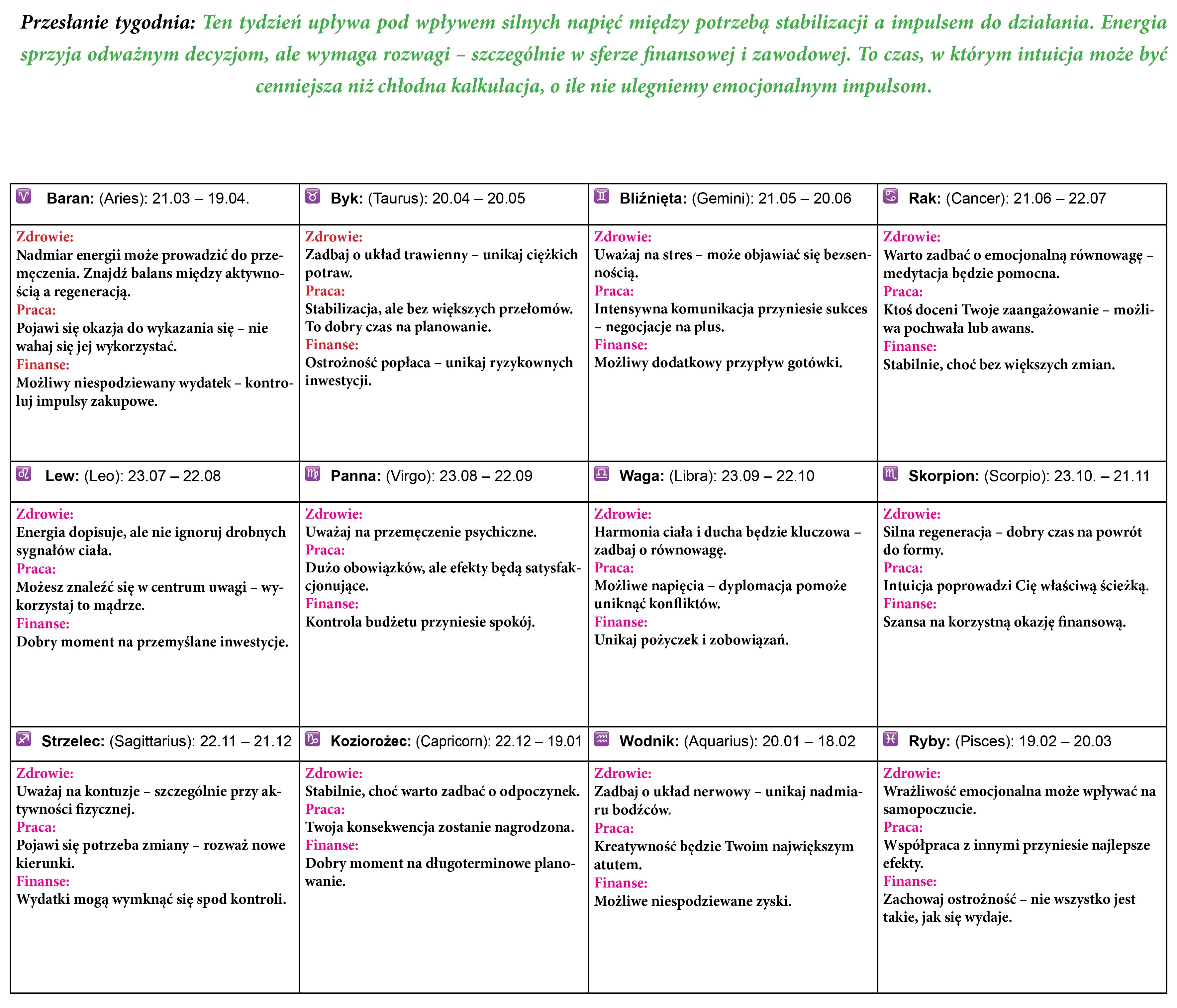 TWÓJ HOROSKOP 13-19.04.2026