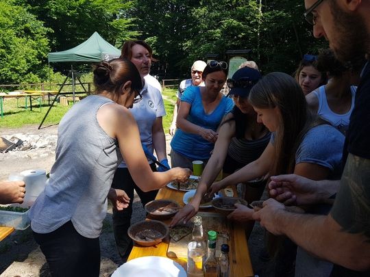 Chleb z popiołem z drewna bukowego, okrywający podniebnie zapomnianym posmakiem, szczawik zajęczy z dodatkami, smażone pędy podgoryczniaka czy sałatka z kwiatów wiosennych z polewą owocową na jadalnym mchu, to tylko niektóre niespodzianki kulinarne przygotowane na spotkanie w Puszczy Bukowej. Uczestnicy otrzymali przepisy by tworzyć własne kombinacje.