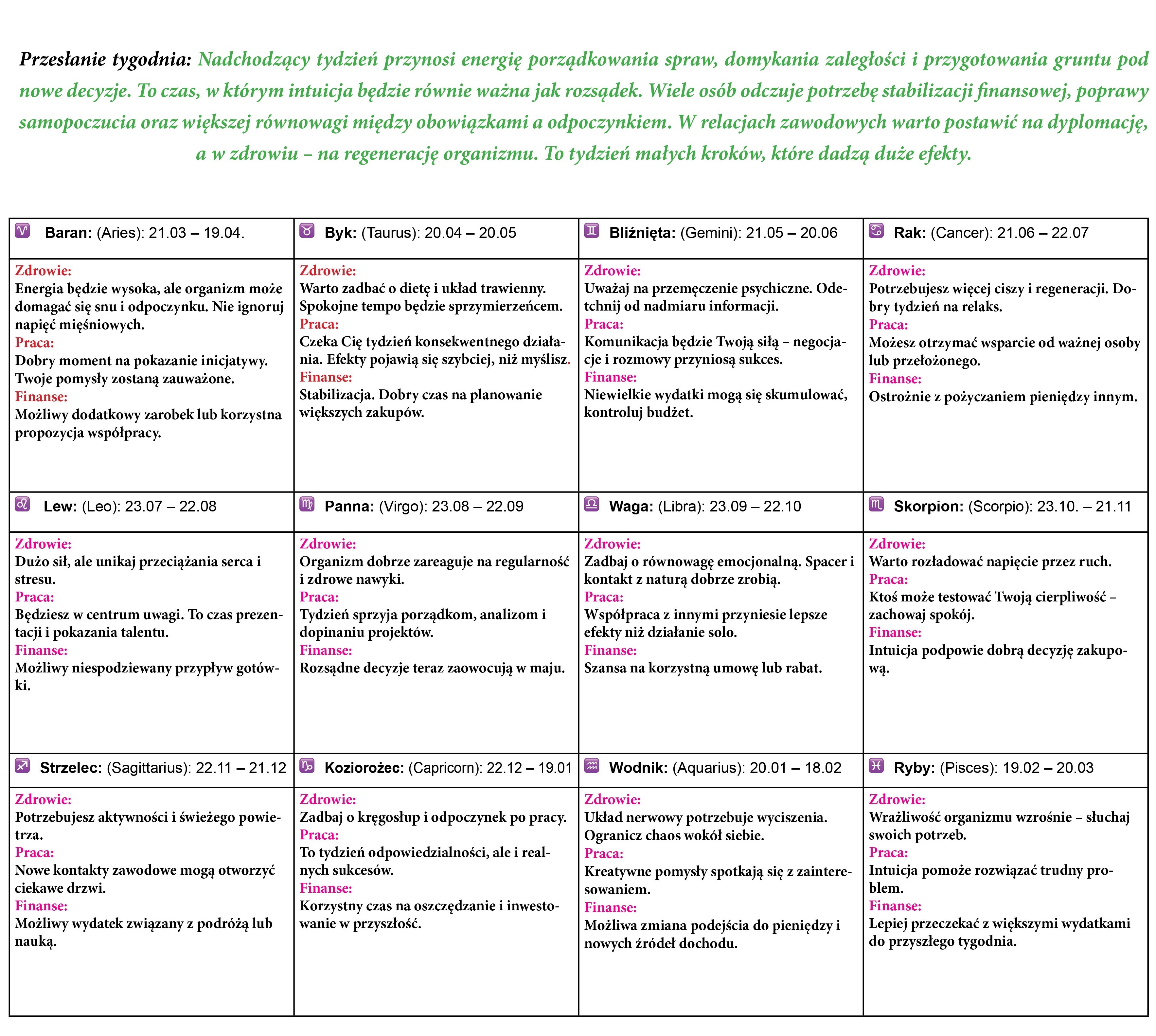 TWÓJ HOROSKOP 13-19.04.2026