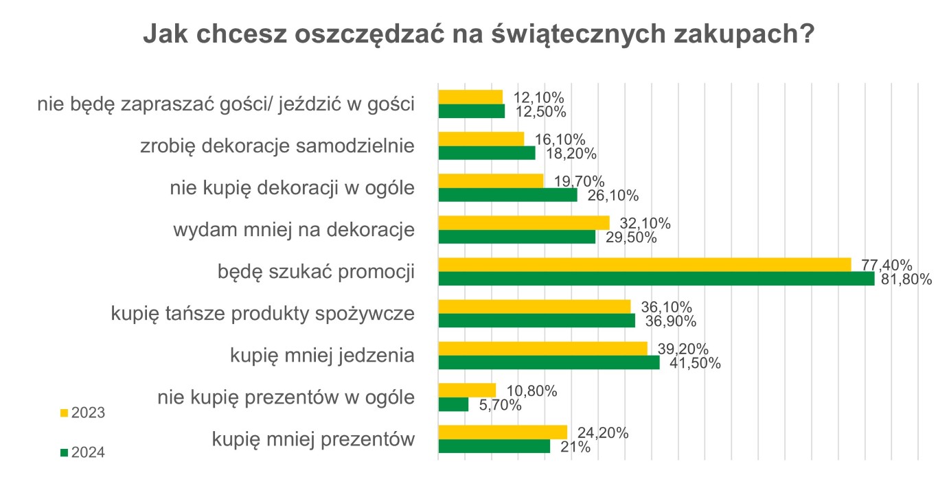 Wyniki z ubiegłego roku są podobne, bo 73,5% respondentów planowało oszczędzać na zakupach, głównie poprzez szukanie promocji.