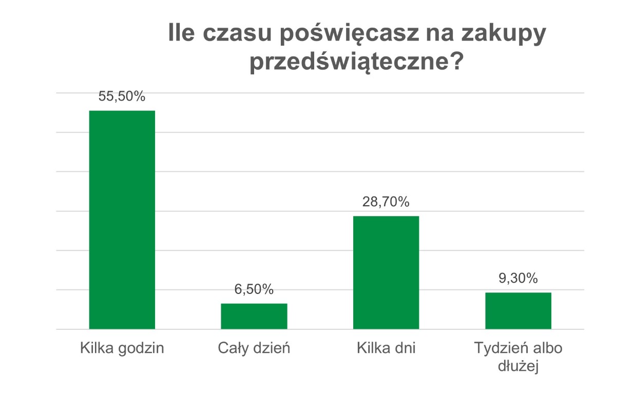 Na zakupy najczęściej poświęcamy kilka godzin (55,5%) lub nawet kilka dni (29%).