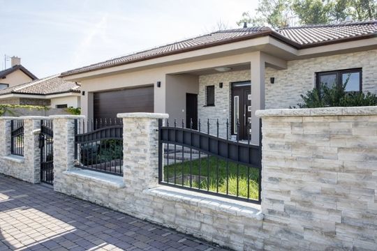 Kamień betonowy doskonale sprawdzi się zarówno w nowoczesnej aranżacji, jak i tej bardziej klasycznej, nawiązującej do tradycji. Stonowana kolorystyka płytek betonowych zamontowanych na całej elewacji stanowi idealne tło dla otaczającej roślinności. – Ciekawa faktura kamienia dekoracyjnego potrafi skutecznie ożywić każdą elewację, tworząc niebanalną wizytówkę domu i zapowiedź tego jak urządzone są jego wnętrza – mówi ekspert firmy Stegu i dodaje: – Interesującym zabiegiem, mającym coraz więcej zwolenników, jest wychodzenie z materiałami dekoracyjnymi na zewnątrz, czyli powielenie tego samego wzoru płytek we wnętrzu i na elewacji. Takie ujednolicenie wystroju prezentuje się bardzo efektownie, szczególnie w strefie przytarasowej, której coraz częściej towarzyszą duże przeszklenia „otwierające” dom na ogród. Odpowiednia elewacja, współgrająca z kolorystyką wykończenia płyty tarasowej i alejek, np. z kostki brukowej będzie stanowić dopełnienie pięknie wypielęgnowanego ogrodu Dążąc do pełnej harmonii poprzez zapewnienie spójności w aranżacji, możemy pójść jeszcze o krok dalej i pokusić się o takie samo wykończenie ogrodzenia wokół naszej posesji czy takich elementów małej architektury jak np. grill ogrodowy – dodaje ekspert z firmy Stegu.