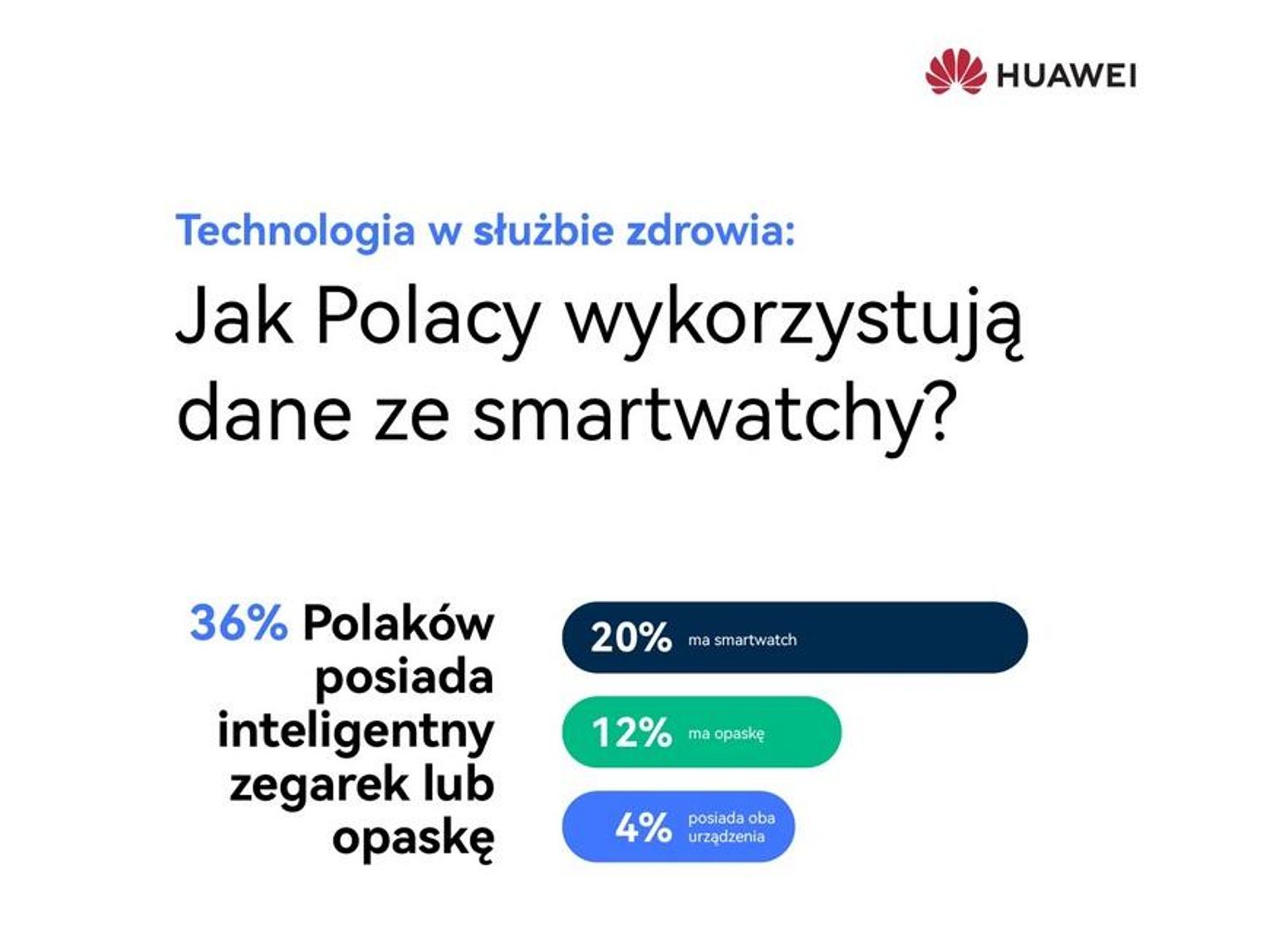 Z urządzeń ubieralnych, czyli inteligentnych zegarków i opasek, korzysta ponad 1/3 Polaków - wynika z badania Huawei CBG Polska [1]. Sprzęty te pozwalają na monitorowanie aktywności fizycznej, a także kluczowych parametrów zdrowotnych, takich jak tętno i saturacja krwi, a nawet EKG czy ciśnienie tętnicze. Dane te mogą dostarczać cennych informacji zarówno posiadaczowi zegarka, jak i lekarzowi, wspierając diagnostykę. W praktyce zaledwie 25% użytkowników pokazała doktorowi zebrane w ten sposób wyniki. Dlaczego tak się dzieje? I czy warto promować wykorzystywanie danych odpacjenckich w polskiej służbie zdrowia?