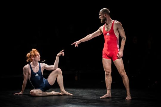w spektaklu „Bromance” Sceny Roboczej w Poznaniu,