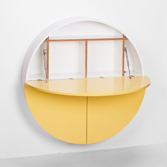 Biało-żółte wielofunkcyjne biurko ścienne EMKO Pill, cena 8019 zł