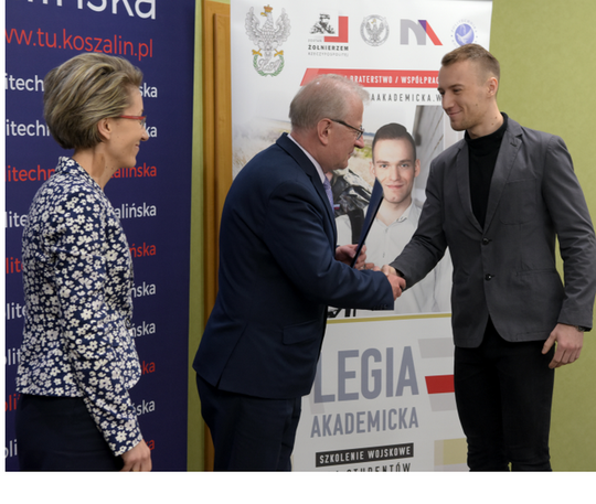 Rektor Politechniki Koszalińskiej prof. Tadeusz Bohdal gratulował studentom obywatelskiej postawy, wręczając w piątek (17 maja br.) certyfikaty ukończenia szkolenia teoretycznego. – Im więcej młodych ludzi będzie znało podstawy wojskowego rzemiosła, tym większa szansa, że w razie konieczności będziemy skutecznie obronieni. Wierzę jednak, że takiej potrzeby nie będzie – zastrzegł wspominając własną służbę wojskową w Wyższej Oficerskiej Szkole Samochodowej w Pile, a potem szkolenie praktyczne w jednostce wojskowej w Świdwinie.