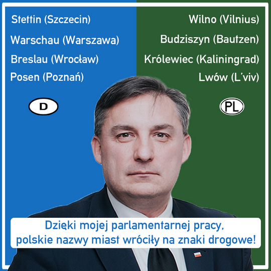 Poseł Sylwester Chruszcz repolonizuje nazwy miast na znakach drogowych