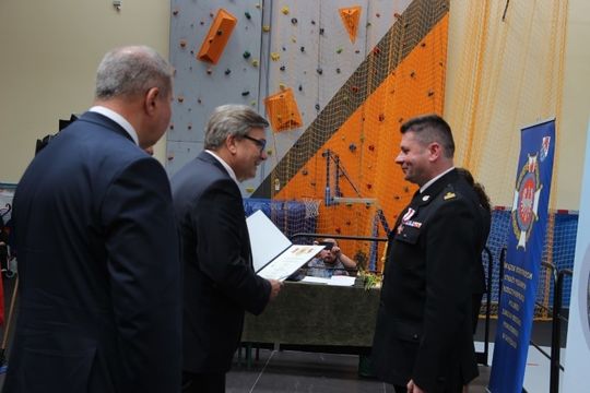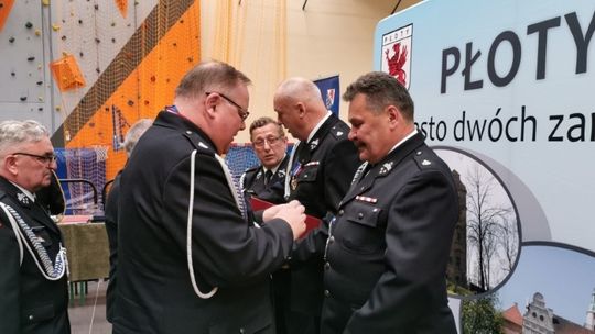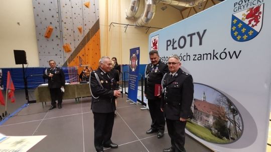 Dalsza część uroczystości odbyła się w hali. W jej trakcie zostały wręczone odznaczenia państwowe, resortowe oraz awanse na wyższe stopnie strażackie. Radny Sejmiku Województwa Zachodniopomorskiego Artur Łącki uhonorował Gryfem Zachodniopomorskim mł. bryg. mgr. inż. Andrzeja Gołdyna. Wicestarosta Powiatu Gryfickiego wręczył podziękowania wraz z listami gratulacyjnymi za zasługi na rzecz pożarnictwa, a także pełną gotowość do pełnienia służby na rzecz mieszkańców Powiatu Gryfickiego. Burmistrz Płotów uhonorował strażaków z gminy Płoty listami gratulacyjnymi oraz wręczył nagrody młodym laureatom ogłoszonego przez OSP w Płotach konkursu plastycznego pt. „Codzienna praca strażaka”. Konkurs cieszył się dużym zainteresowaniem wśród młodzieży szkolnej a nawet przedszkolaków – na konkurs wpłynęło 55 prac co świadczy o tym, że zainteresowanie służbą w straży pożarnej wśród najmłodszych mieszkańców gminy Płoty jest duże i ciągłość pokoleniowa OSP Płoty jest niezagrożona.