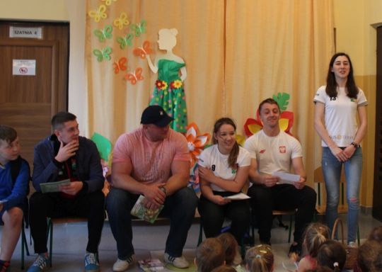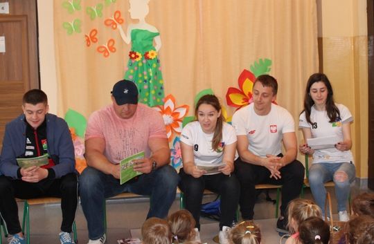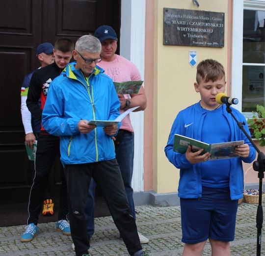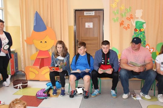 W dniu inauguracji zaprosiliśmy trzebiatowskich sportowców- przedstawicieli różnych dyscyplin sportowych, aby uroczyście rozpocząć akcję czytania naszym milusińskim. Tradycją jest odczytanie w tym dniu „Lokomotywy” Tuwima. I tak się stało. Z naszego zaproszenia skorzystali i włączyli się do wspólnej akcji : Mariusz Ściesiński- „Aktywny Trzebiatów”, promujący zdrowy styl życia, bieganie, Igor Ładyżyński - reprezentujący Piłkarski Klub Sportowy Intermarche Rega Trzebiatów, Bogusław Barański- biegacz, maratończyk, krzewiciel idei biegania, Grzegorz Szymański –strongman, Mateusz Burak – Piłkarski Klub Sportowy Intermarche Rega Merida senior, zawodnicy unihokeja: Natalia Iwanowska – Międzyszkolny Ludowy Uczniowski Klub Sportowy „Jedynka” Trzebiatów, juniorka młodsza, seniorzy MLUKS Jutrzenka Cirocka, Zuzanna Krzywak, Maciej Bogdański.