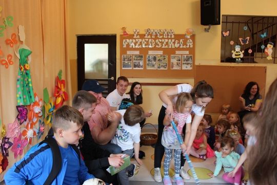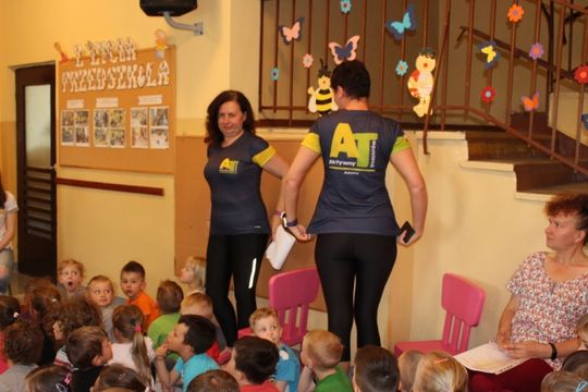Przed dziećmi zaprezentowały się w układach tanecznych : Krajowe Stowarzyszenie ARAMIS (Pani Anna Konopko), Szkoła Tańca „ISKRA”(Katarzyna Radomska), buziaki malowały panie z Warsztatu Terapii Zajęciowej w Trzebiatowie, a następnie wszyscy aktywnie brali udział w wesołych zajęciach sportowych: przeciąganie liny, piłka nożna, unihokej…Trzebiatowski Ośrodek Kultury dziękuje wszystkim, którzy włączyli się do tej rozczytanej sportowej akcji!