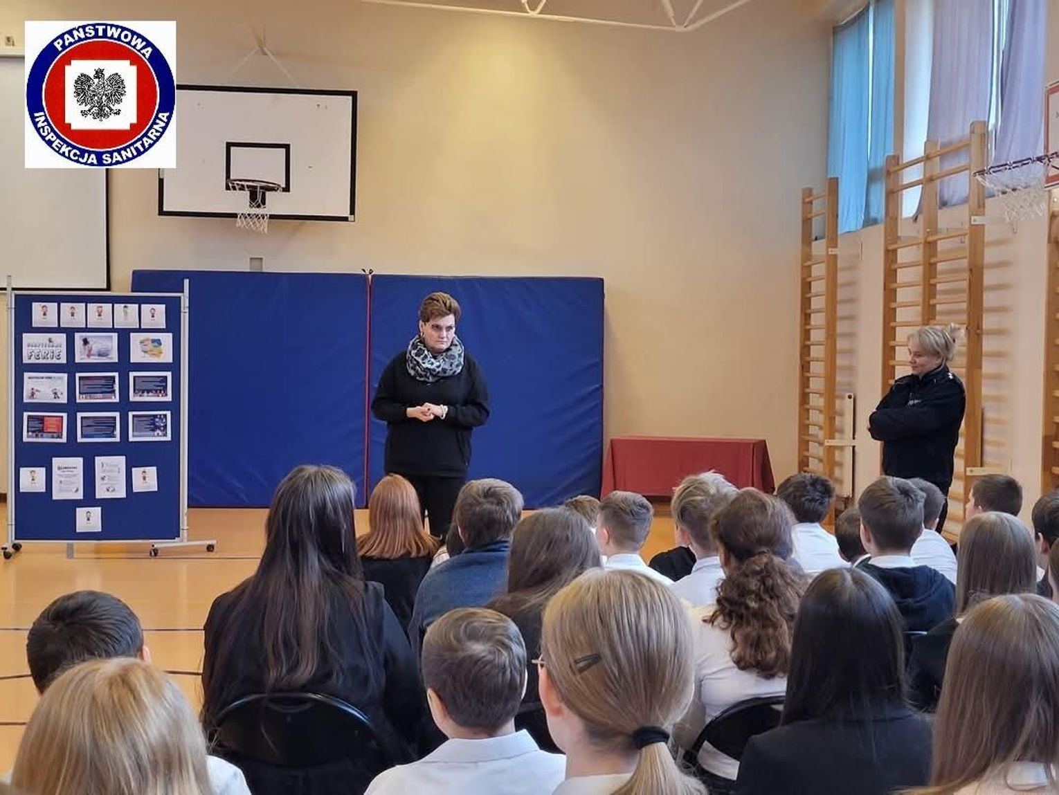 Pracownicy Państwowej Inspekcji Sanitarnej we współpracy z Policją prowadzili działania edukacyjne w placówkach oświatowych przed rozpoczęciem ferii oraz realizują spotkania edukacyjne