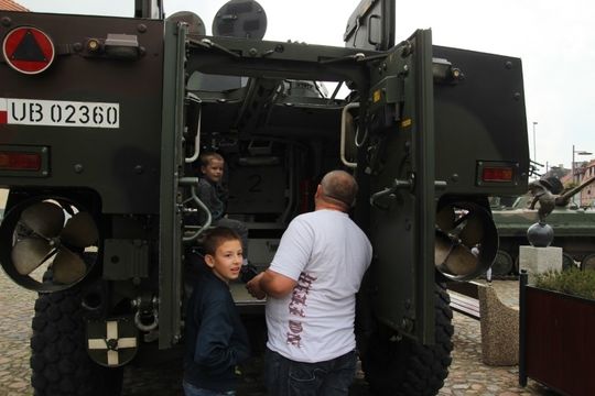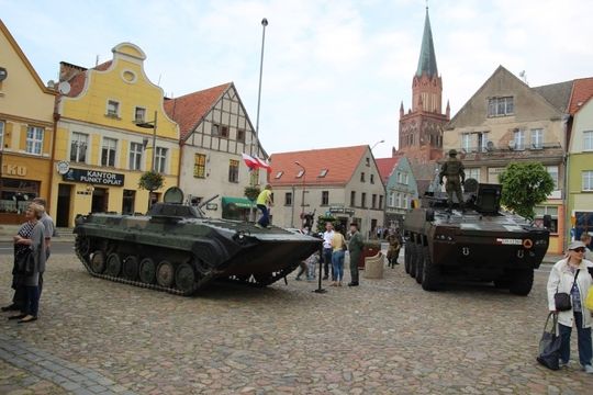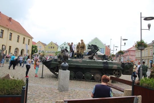 Niewątpliwą atrakcją dla tłumnie przybyłych mieszkańców Trzebiatowa była zorganizowana na placu przy Ratuszu prezentacja sprzętu wojskowego w tym transportera opancerzonego ROSOMAK i po raz pierwszy prezentowanej wyrzutni rakietowej POPRAD. Swój sprzęt zaprezentowała także Grupa Rekonstrukcji Historycznej NAŁĘCZ oraz policjanci i strażacy. Jak na wojskową uroczystość przystało każdy mógł też skosztować żołnierskiej grochówki.