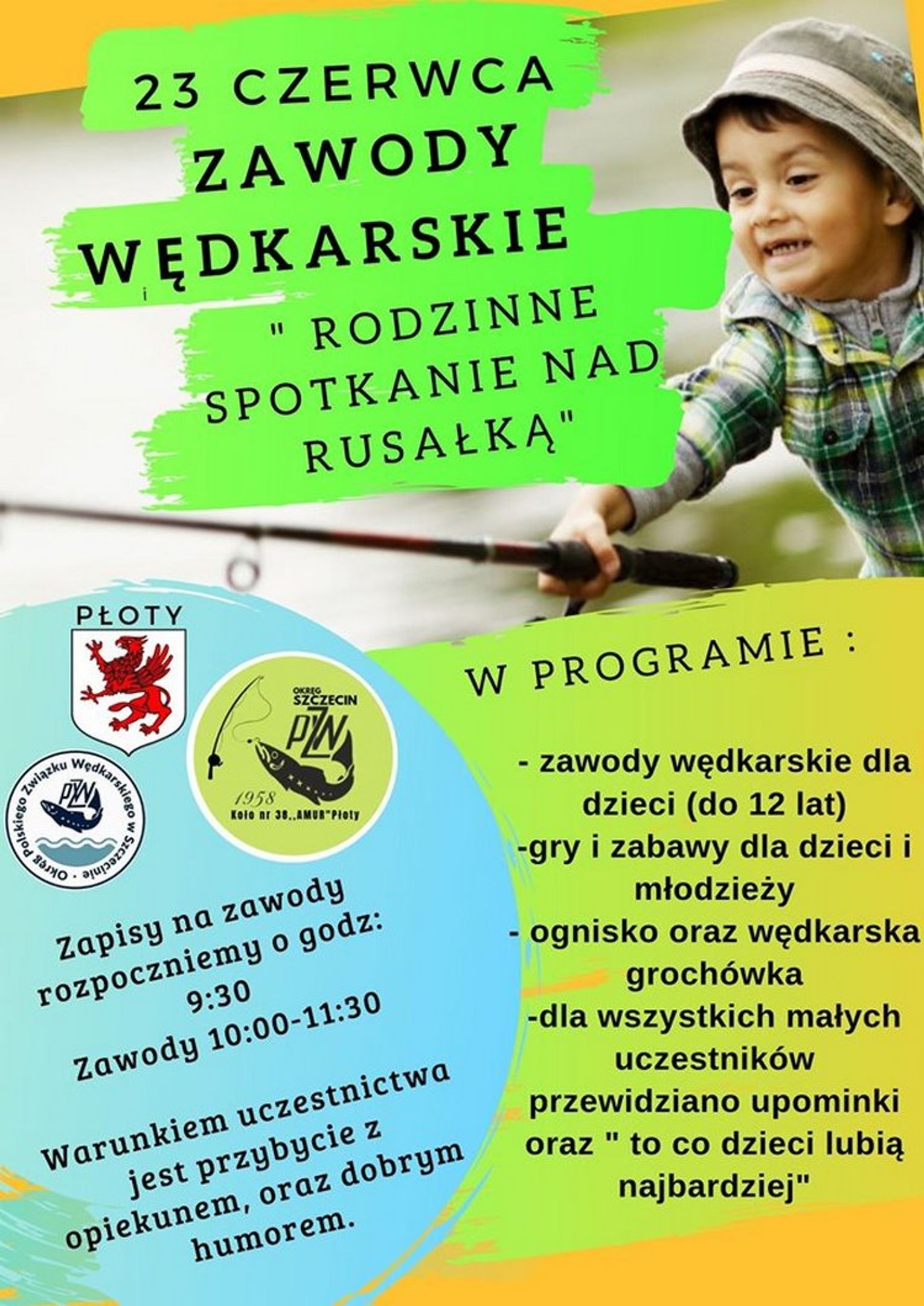 W ramach imprezy rozegrane zostaną zawody wędkarskie dla dzieci w wieku do 12 lat. zapisy uczestników w dniu zawodów do godz. 9.45