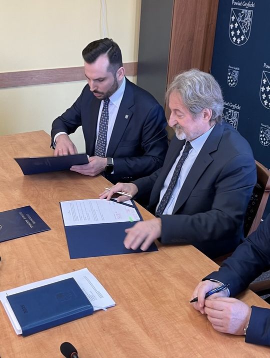 W podpisaniu umowy wzięli udział m.in Bartosz Brożyński - Wicewojewoda Zachodniopomorski, Ryszard Chmielowicz - Starosta Gryficki, Wicestarosta Powiatu Gryfickiego Waldemar Wawrzyniak, Członek Zarządu Powiatu Gryfickiego Adrian Żoła, Członek Zarządu Powiatu Gryfickiego Krzysztof Brożyński.