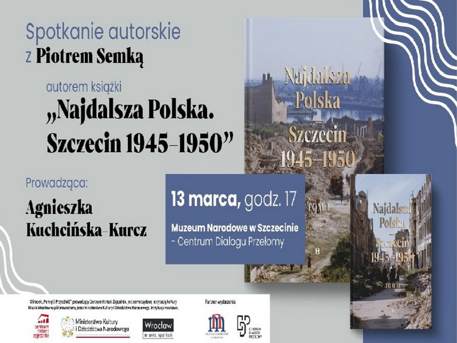 Zapraszamy w czwartek, 13 marca 2025 r., o godz. 17.00, do Muzeum Narodowego w Szczecinie – Centrum Dialogu Przełomy na promocję dwutomowego albumu autorstwa Piotra Semki pt. „Najdalsza Polska. Szczecin 1945–1950”.