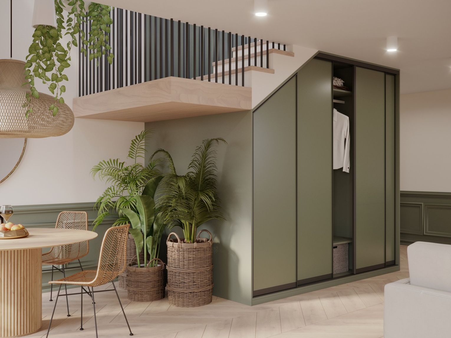 - Szafy wnękowe z drzwiami przesuwnymi pozwalają utrzymać porządek i estetykę przestrzeni. Warto wybrać modele wyposażone w systemy organizacji wnętrza, takie jak wysuwane półki, drążki na ubrania czy dedykowane przegródki na obuwie. Fronty mogą być wykończone lustrem, co dodatkowo optycznie powiększy przestrzeń i nada jej lekkości.