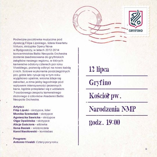 12.07.2019 - Akademia Vivaldiego, godz. 19:00, Kościół pw. Narodzenia NMP, Gryfino