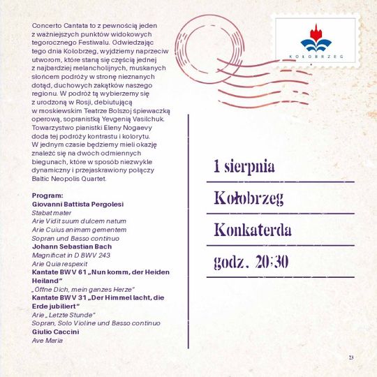 01.08.2019 - Concerto Cantata, godz. 20:30, Konkaterda, Kołobrzeg