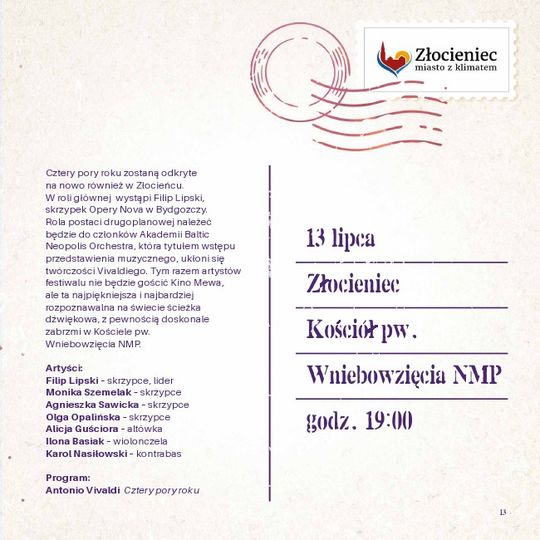 13.07.2019 - Viva Vivaldi, godz. 19:00, Kościół pw. Wniebowzięcia NMP, Złocieniec