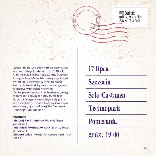 17.07.2019 - Grieg in Szczecin, godz. 19:00, Technopark Pomerania, Sala Castanea, Szczecin