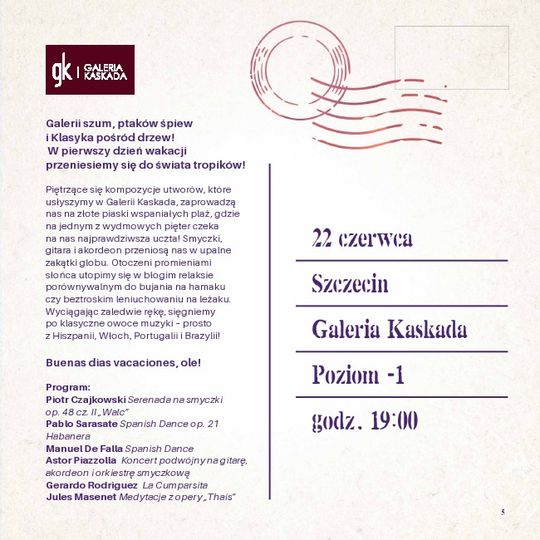 22.06.2019 - Klasyka pod palmami, godz. 19:00, Galeria Kaskada, poziom -1, Szczecin