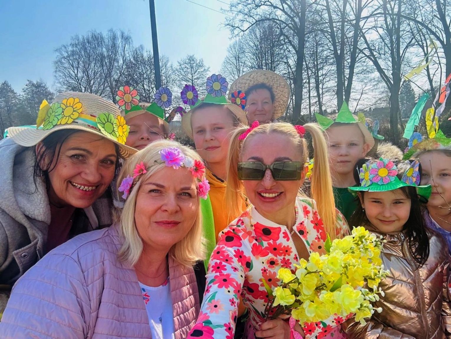 Tego dnia każda klasa zaangażowała się w pełni, aby zaprezentować się jak najlepiej, przygotowując się do obchodów Pierwszego Dnia Wiosny. Również p. Dyrektor Marzena Stępień przygotowała się do świętowania , przebierając się za Panią wiosnę.