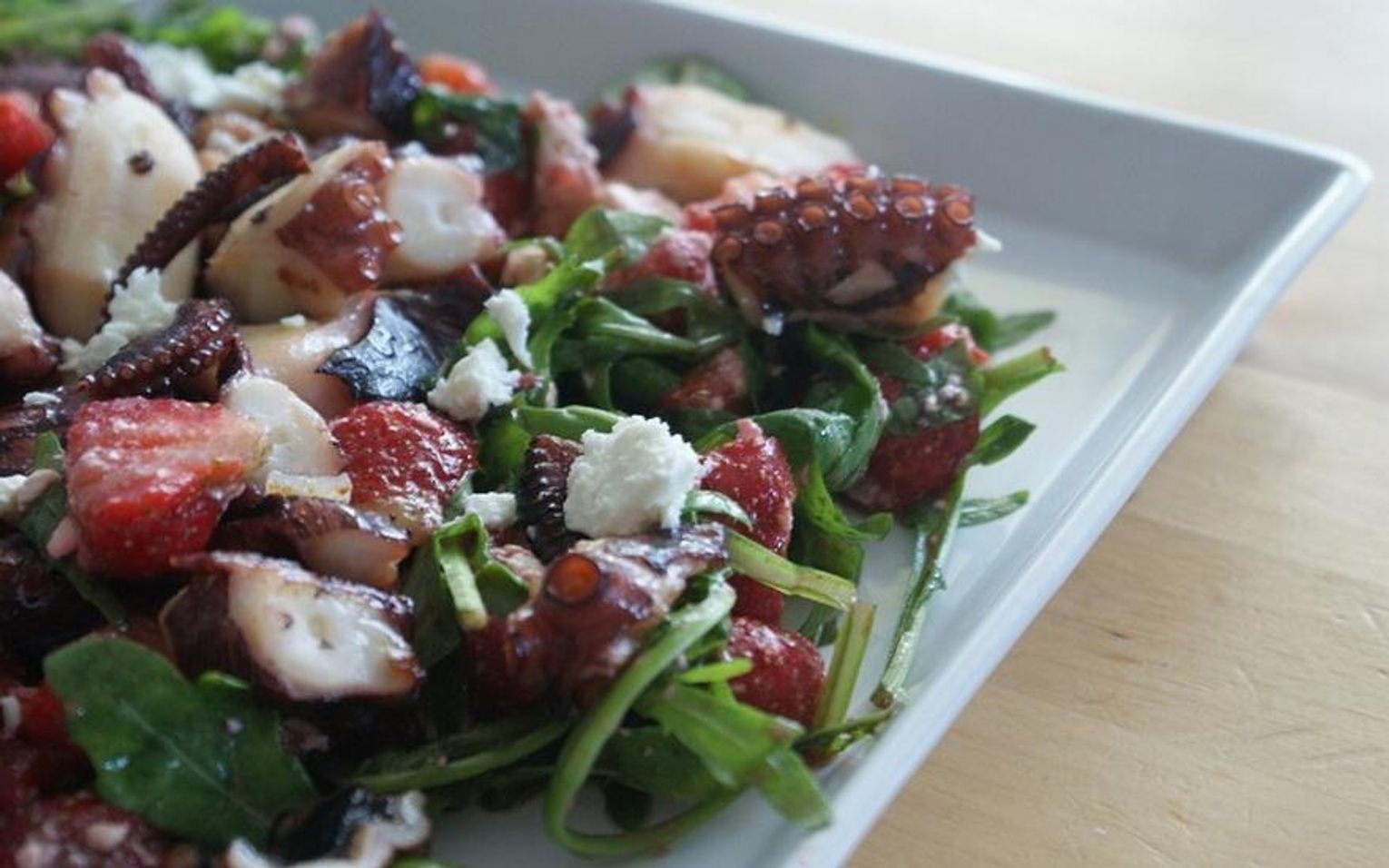 Sałatka z truskawkami i ośmiornicą z sosem balsamicznym