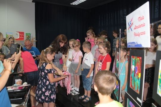 Okazja do dumnej radości była spora, organizatorzy wspólnie z biblioteką przygotowali ciekawą wystawę prac uczestników akademii dzięki czemu można było się przekonać, że plastyczne talenty wspaniale się rozwijają. Warto wspomnieć, że akademia może poszczycić się całkiem wymiernym sukcesem, we wprowadzonych w tym roku po raz pierwszy egzaminach kwalifikacyjnych do Liceum Plastycznego w Gryficach czterech absolwentów doskonale sobie z tym egzaminem poradziło.