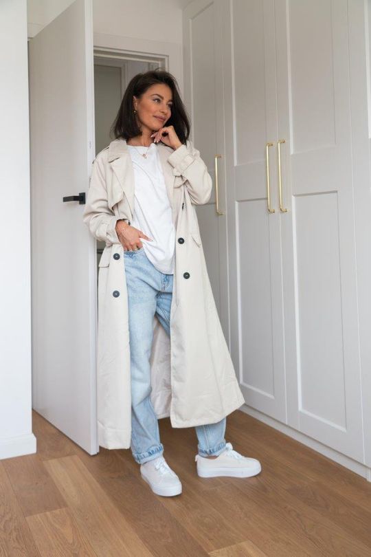 Dla miłośniczek wygodnego miejskiego stylu doskonałym wyborem będzie zestawienie trencza z jasnymi jeansami typu mom fit, białym T-shirtem i sportowymi sneakersami. Do tego shopperka lub plecak i gotowe! Taki look to idealne rozwiązanie na spacer, zakupy czy spotkanie z przyjaciółmi. Z kolei kobiety szukające zestawu do pracy docenią jego bardziej klasyczną, biznesową odsłonę. Tutaj świetnie sprawdzą się spodnie z kantem lub ołówkowa spódnica, do tego elegancka bluzka w stonowanym kolorze i buty na obcasie – szpilki lub botki na słupku. Całość można uzupełnić o skórzaną torebkę i delikatną biżuterię.