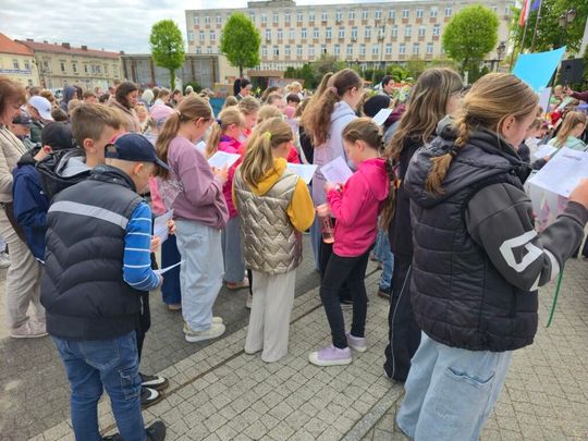 Udało się i to w znakomitym stylu poprawiając poprzedni rekord o ponad 300 osób. Pogoda dopisała i był czas na świetną zabawę wszyscy uczestnicy „wsiedli” do doraźnie stworzonego pociągu prowadzonego oczywiście przez specjalną lokomotywę w osobie dyrektora Miejskiej Biblioteki Publicznej w Gryficach i inicjatora całego „zamieszania” aby przemierzając kolejne metry w rytm piosenki „Jedzie pociąg z daleka” delektować się wspaniałym sukcesem.