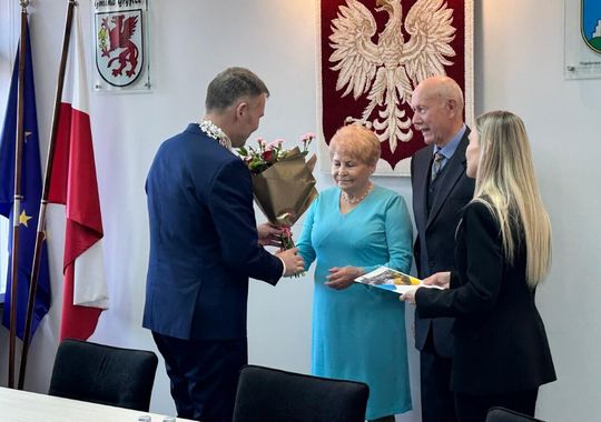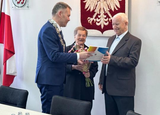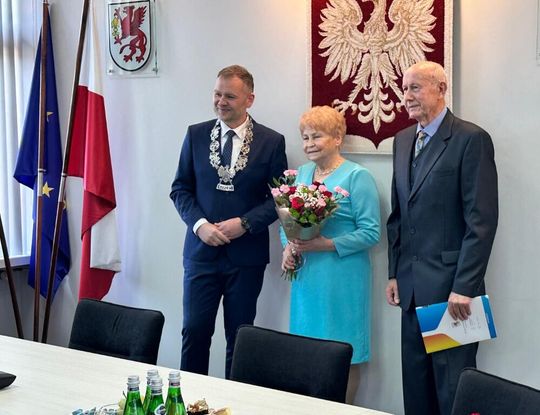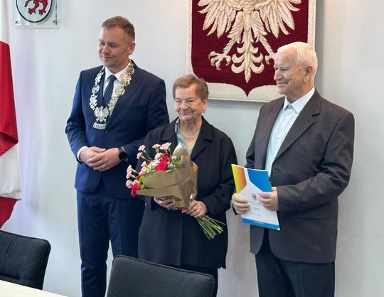 Wszyscy jubilaci otrzymali z rąk burmistrza listy gratulacyjne i wiązanki kwiatów.