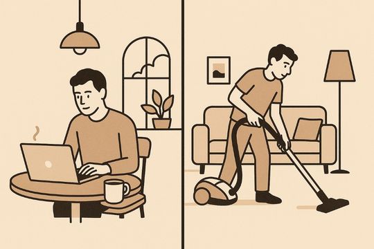 Niezależnie od tego, czy ktoś sprząta mieszkanie podczas przerwy w pracy, czy medytuje przed ważnym spotkaniem - o efektywności decyduje profesjonalizm i samodyscyplina, a nie miejsce wykonywania pracy. Freelancerzy, rozliczani wyłącznie z efektów, udowadniają to każdego dnia.