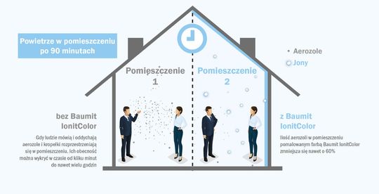 Badania naukowe potwierdzają, że w pomieszczeniach pomalowanych farbą aktywnie wytwarzającą jony ujemne, w krótkim czasie znacząco spada stężenie aerozoli - niewielkich cząsteczek, które emitujemy podczas normalnego oddychania i mówienia, będących główną drogą rozprzestrzeniania się wirusów i bakterii. To natomiast oznacza mniejsze ryzyko przeziębień i infekcji dróg oddechowych, bo trzeba podkreślić, że do większości zakażeń dochodzi właśnie w zamkniętych pomieszczeniach.
