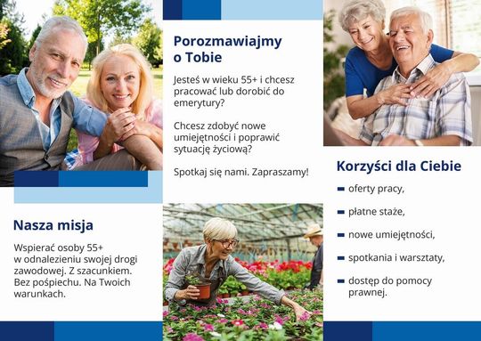 Cel? Pomóc osobom w wieku 55+ znaleźć zatrudnienie, wrócić na rynek pracy lub zdobyć nowe kwalifikacje.