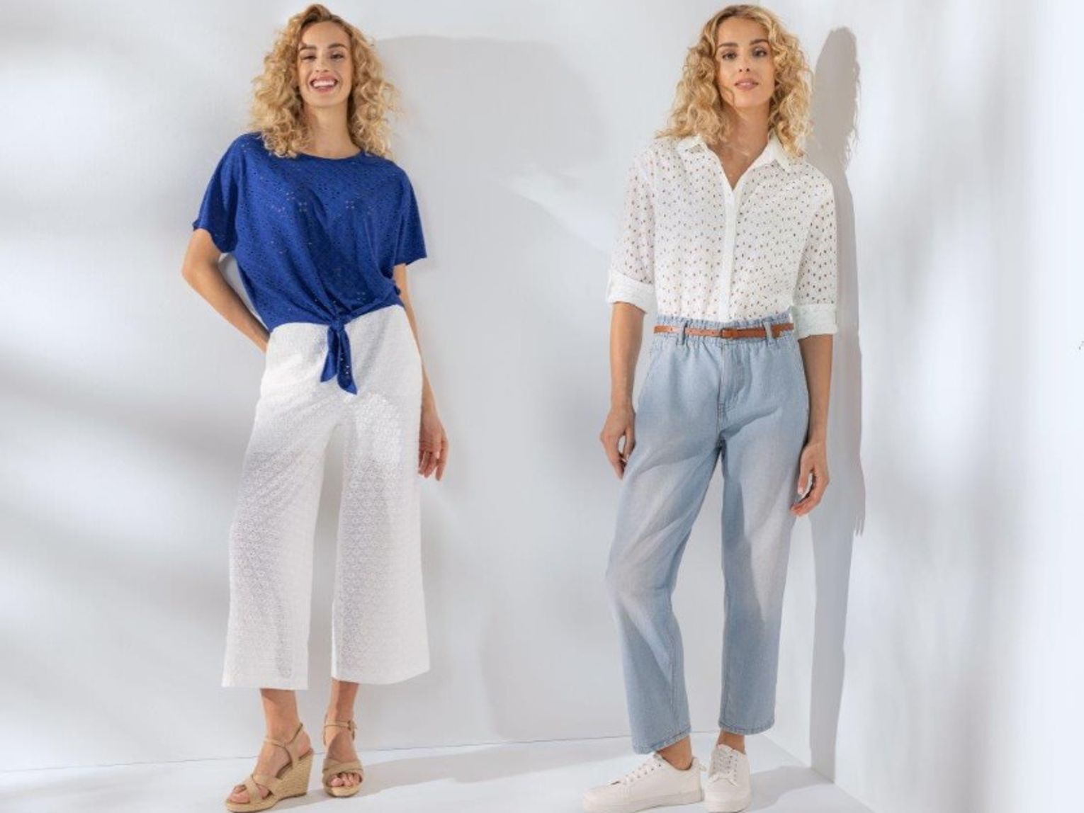 Dla kobiet lubiących subtelność i romantyzm strzałem w dziesiątkę będą białe, szerokie spodnie z ażurowym ornamentem. Zestawione z intensywnym kolorem – choćby granatem – stworzą harmonijną i pełną świeżości stylizację. Ciekawym wyjściem są też roślinne i abstrakcyjne wzory, które ożywią każdy wiosenny look. W przypadku jeansów warto testować różne zestawienia barw – jasny niebieski, granat, ale też brąz, biel czy nawet zieleń – idealnie skomponują się z białą koszulą lub bluzką w pasującym kolorze.
