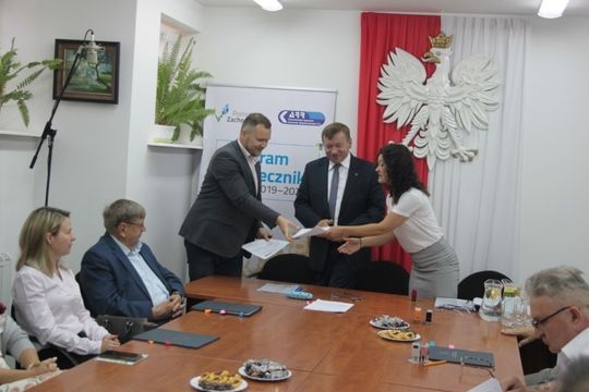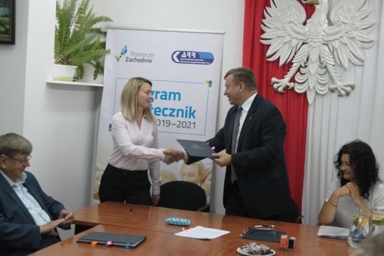 W obecności wicemarszałka województwa Jarosława Rzepy oraz burmistrzów Gryfic Andrzeja Szczygła i Płotów Radosława Mackiewicza mowy w ramach „Grantów sołeckich 2019” Podpisali m.in. sołtys Kocierza Anita Bielawska na realizację projektu wykonania ogrodzenia boiska i placu zabaw, sołtys Słudwii Jarosław Dąbrowski na budowę placu zabaw. Grant sołecki uzyskało też sołectwo Wytok na budowę siłowni zewnętrznej- alternatywnego miejsca spotkań, rekreacji i aktywnego wypoczynku dla mieszkańców.