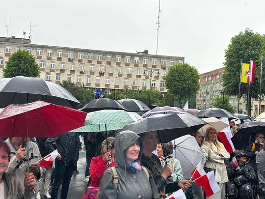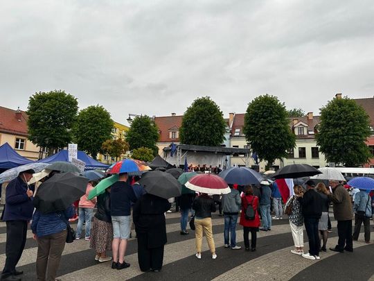 Mimo deszczowej pogody w wiecu wzięła udział bardzo liczna grupa mieszkańców.