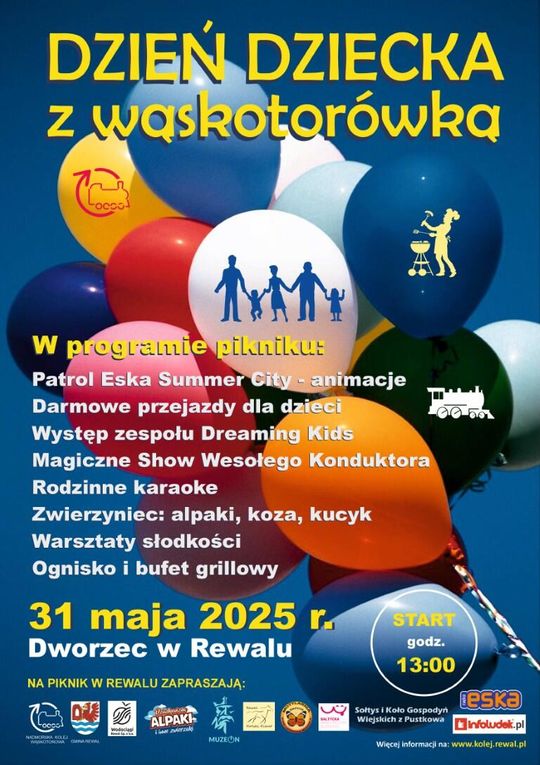 W przeddzień Międzynarodowego Dnia Dziecka, tj. w sobotę, 31 maja 2025 r. Nadmorska Kolej Wąskotorowa zaprasza wszystkie dzieci, ich rodziców i opiekunów na piknik, który odbędzie się na dworcu wąskotorowym w Rewalu. W tym dniu dzieci do 14. roku życia będą mogły skorzystać z darmowych przejazdów nadmorską kolejką.