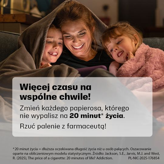Najnowsze badania dowodzą, że średnio każdy wypalony papieros skraca życie aż o 20 minut. Czy nie lepiej spędzić ten czas z rodziną? Nigdy nie jest za późno, by odejść od nałogu. Rzucenie palenia już dziś pozwoli dłużej cieszyć się ważnymi momentami w gronie najbliższych.