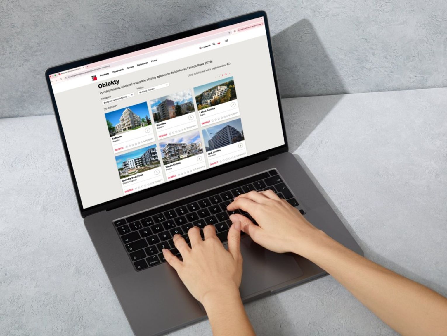 Głosowanie odbywa się online i jest otwarte dla wszystkich. Nie trzeba być architektem ani ekspertem budowlanym – wystarczy wrażliwość na piękno i kilka kliknięć. Odwiedź stronę www.fasadaroku.baumit.com, przejdź do zakładki „Obiekty” i oceń dowolną ilość kandydatów, przyznając każdemu od 1 do 5 gwiazdek, w zależności od stopnia, w jakim najbardziej przypadł ci do gustu.