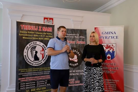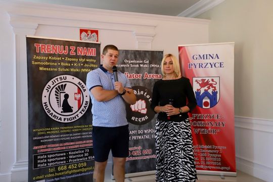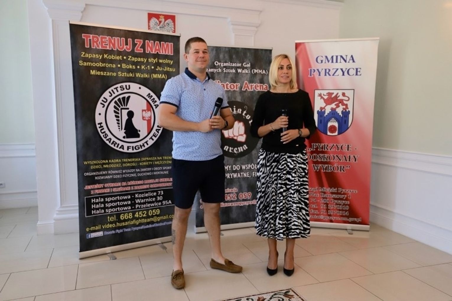 Na zdjęciu burmistrz Pyrzyc Marzena Podzińska w trakcie konferencji prasowej na temat MMA w Pyrzycach.