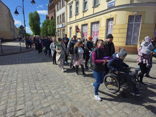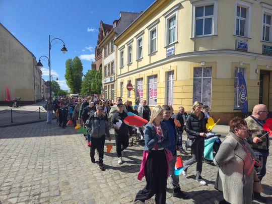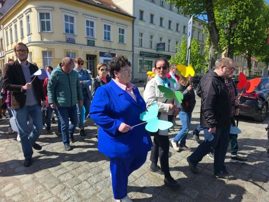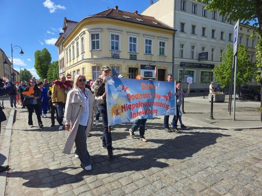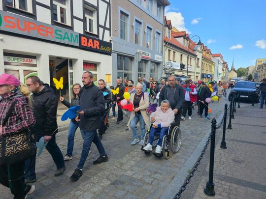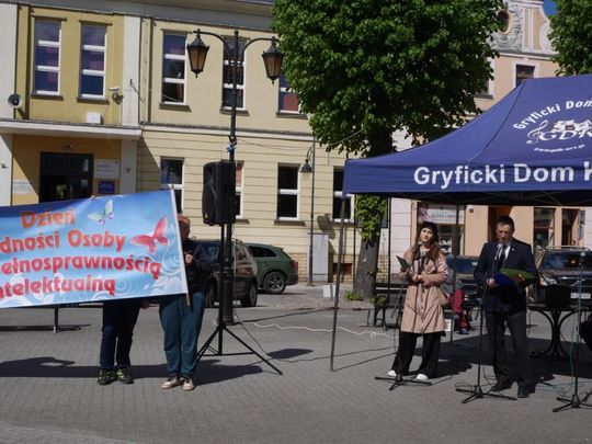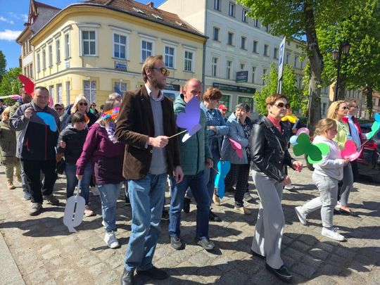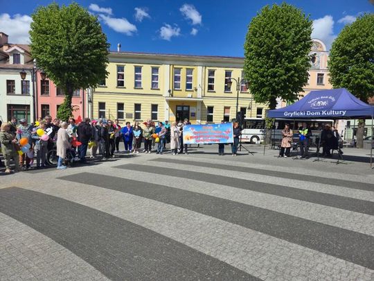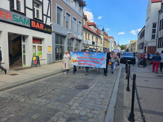 Obchody Dnia Godności Osoby z Niepełnosprawnością Intelektualną zorganizowane przez Polskie Stowarzyszenie na rzecz Osób z niepełnosprawnością Intelektualną koło w Gryficach oraz Powiatowy Ośrodek Wsparcia w Gryficach rozpoczęły się przemarszem ulicami Gryfic.
