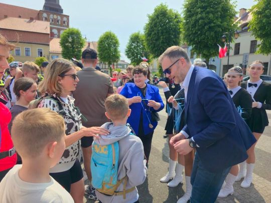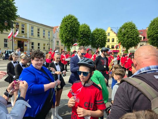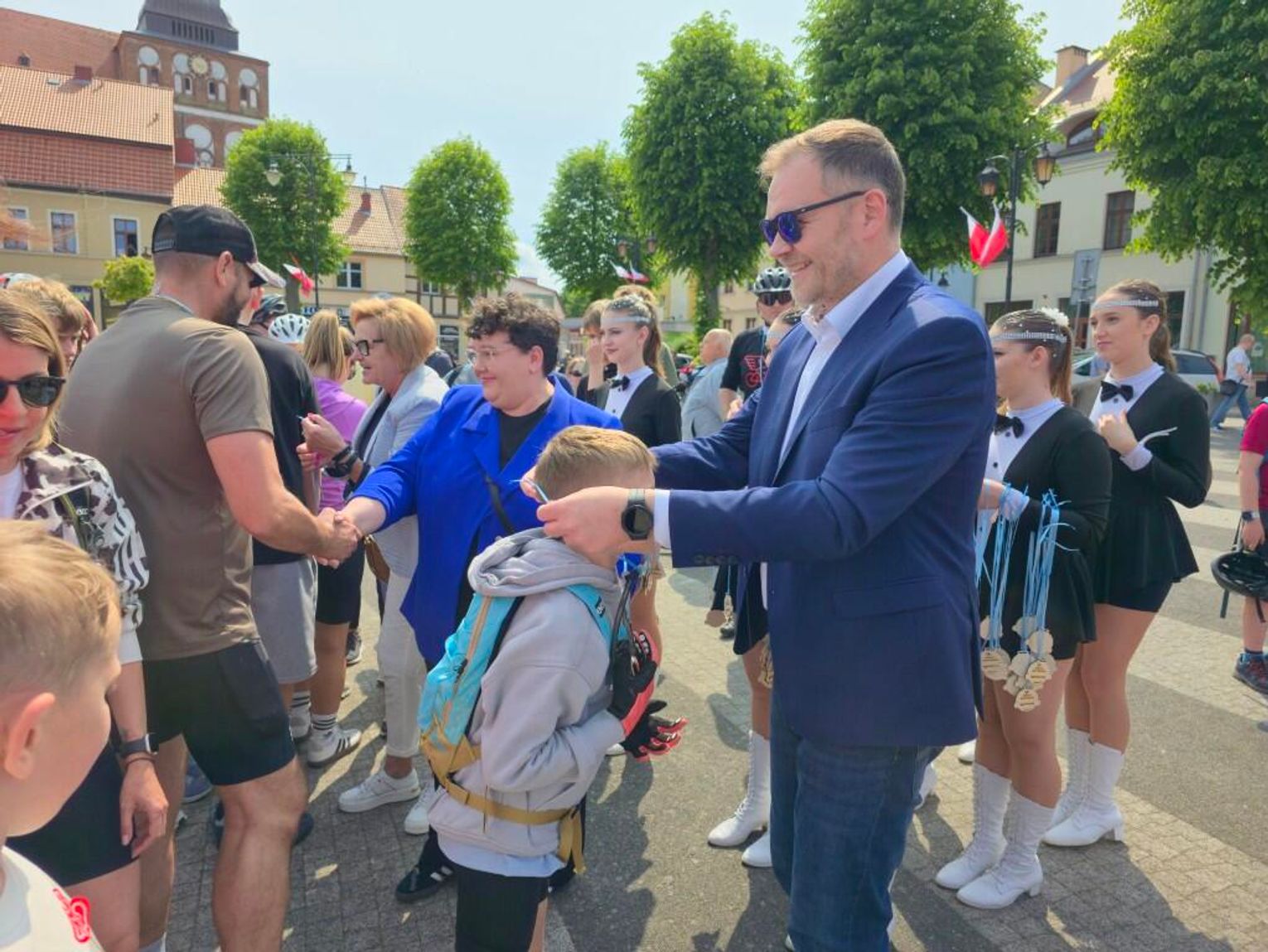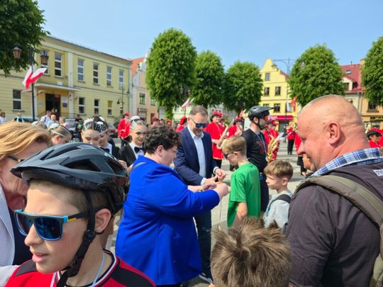 Zakończenie Rajdu nastąpiło na Placu Zwycięstwa w Gryficach gdzie z gratulacjami na uczestników czekali już burmistrz Tomasz Aniuksztys ze swoją zastępczynią Olgą Bujanowską wręczając uczestnikom pamiątkowe medale.