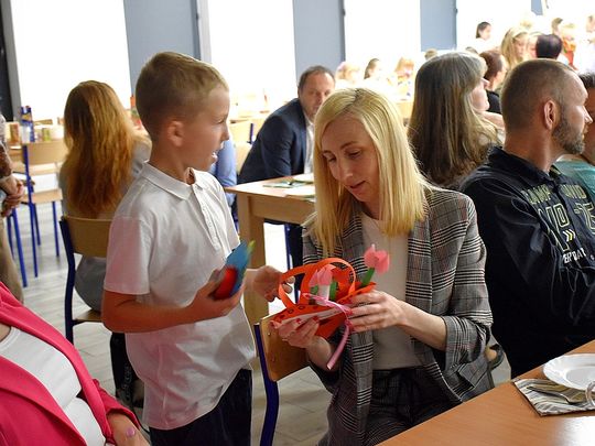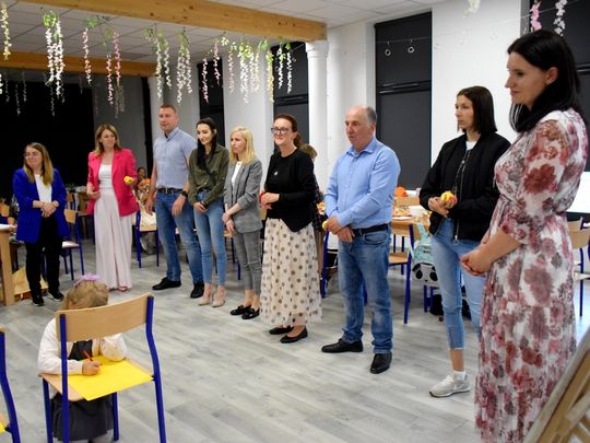 Uroczystość rozpoczęła się serdecznym powitaniem wszystkich przybyłych gości, któremu towarzyszyły wzruszające życzenia złożone przez wychowawców klas I–III. Następnie dzieci zaprezentowały krótki, ale pełen emocji program artystyczny. Nie zabrakło również własnoręcznie wykonanych przez uczniów upominków, które zostały wręczone rodzicom jako wyraz wdzięczności za ich codzienną miłość, troskę i nieustanne wsparcie. Te symboliczne gesty sprawiły, że wielu rodzicom zakręciła się łza wzruszenia w oku. Po części oficjalnej na uczestników czekał słodki poczęstunek. Organizatorzy zadbali również o atrakcje dla dzieci i dorosłych, czyli liczne konkursy i quizy, które dostarczyły wszystkim mnóstwa radości i śmiechu. To radosne wydarzenie pokazało, jak ważne są wspólne chwile oraz jak wielką siłę mają więzi rodzinne. Dzieci czuły się dumne, mogąc zaprezentować swoje talenty przed najbliższymi, a uśmiechy na twarzach rodziców były najlepszym dowodem na to, jak wiele znaczą takie wspólne przeżycia.