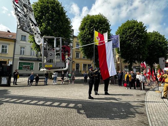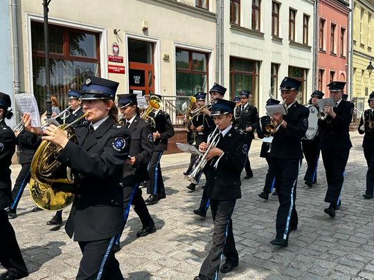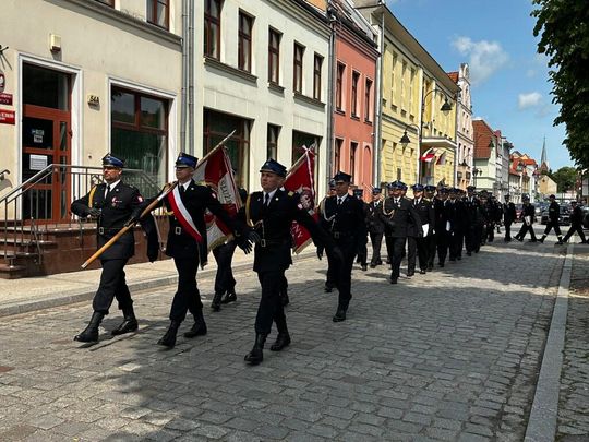 Po nabożeństwie uczestnicy uroczystości prowadzeni przez Strażacką Orkiestrę Dętą przemaszerowali ulicami miasta na miejsce zbiórki na Placu Zwycięstwa.