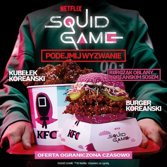Każdy z limitowanych produktów KFC x Squid Game to wyjątkowe połączenie klasyki i nowości. Soczysty filet z kurczaka w różowej bułce nawiązującej do uniformów strażników, skrzydełka skąpane w koreańskim sosie BBQ, czy panierowane stripsy – wszystko serwowane w specjalnych opakowaniach, które przenoszą prosto do świata serialu.