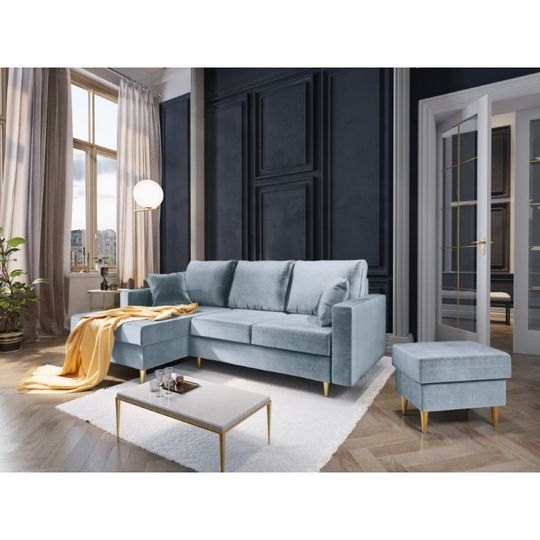 Błękitna sofa 3-osobowa z podnóżkiem Bobochic Paris Luna, Bonami.pl, cena 2 729 zł