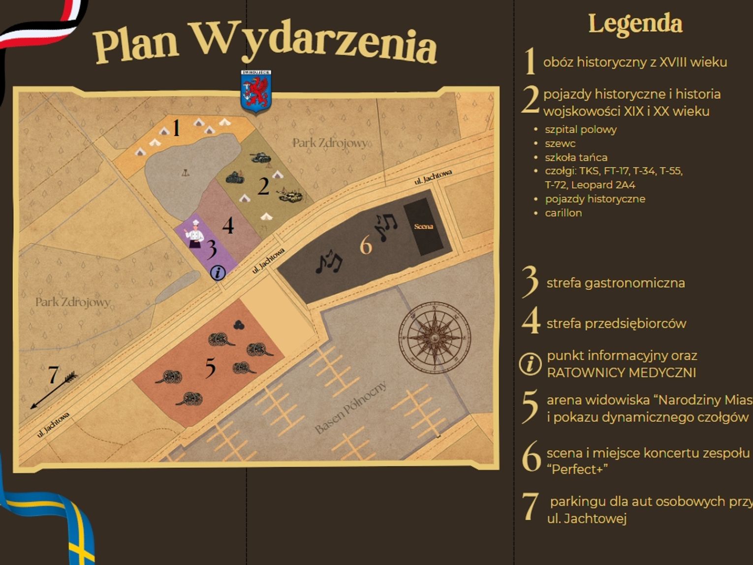 Czołgi FT-17, TKS, T-34, T-55, T-72 i... Leopard 2A4 – w pokazach statycznych i dynamicznych! Grupa historyczna „Garnizon Gdańsk" i wyjątkowa, realistyczna scenografia, której element stanowią zabudowania osady Westswine z początku XVIII wieku. Pasjonaci historii z Polski, Estonii, Litwy i Białorusi. Pokazy pirotechniczne, seminarium popularnonaukowe, koncert jedynego w Polsce mobilnego carillonu i... parada miejska! Dni otwarte świnoujskich fortów oraz specjalne, nocne zwiedzanie Podziemnego Miasta. A na finał – koncert zespołu Perfect!