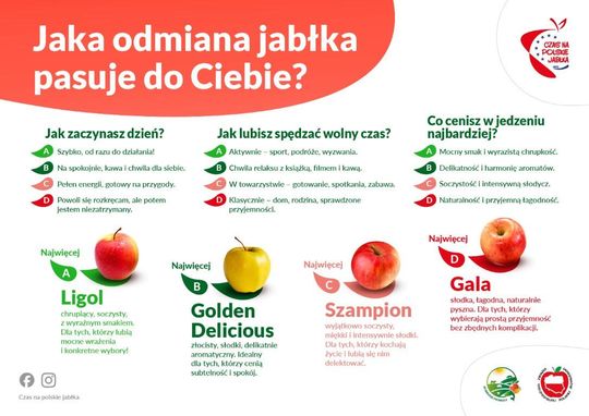 Prowadzona z tej okazji kampania „Czas na polskie jabłka” zachęca, by spojrzeć na jabłka na nowo, jako symbol mądrych wyborów konsumenckich i inwestycji w zdrowie. Na profilach kampanii na Facebooku, Instagramie i kanale na YouTubie można znaleźć przepisy, inspiracje, konkursy i ciekawostki z polskich sadów.