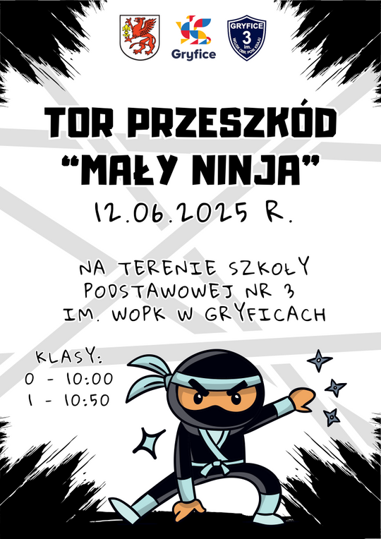 W czwartek, 12 czerwca na boisku przy Szkole Podstawowej nr 3 w Gryficach odbył się ciekawy turniej sportowy z udziałem przedszkolaków i uczniów klas pierwszych szkół podstawowych wzię – „Tor przeszkód Mały Ninja"!